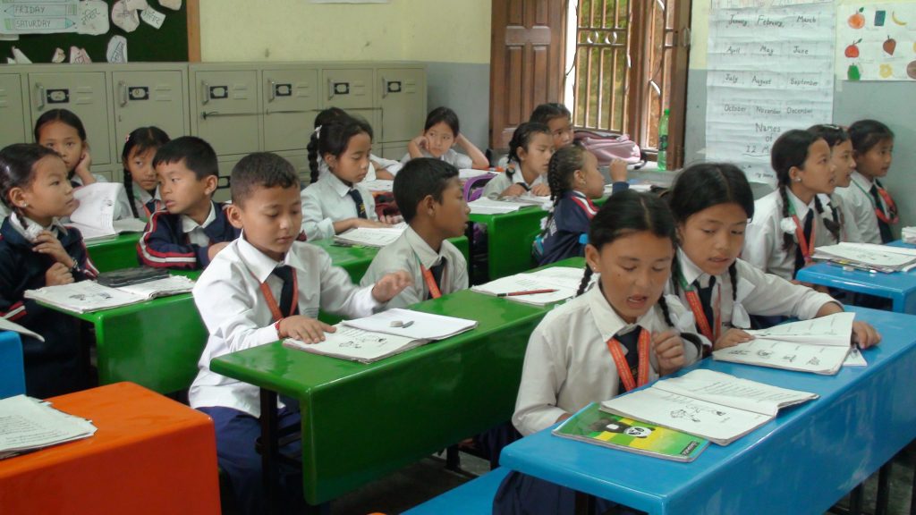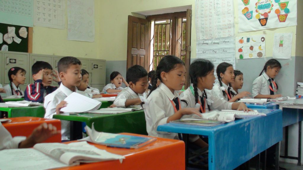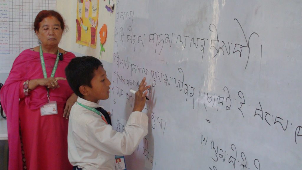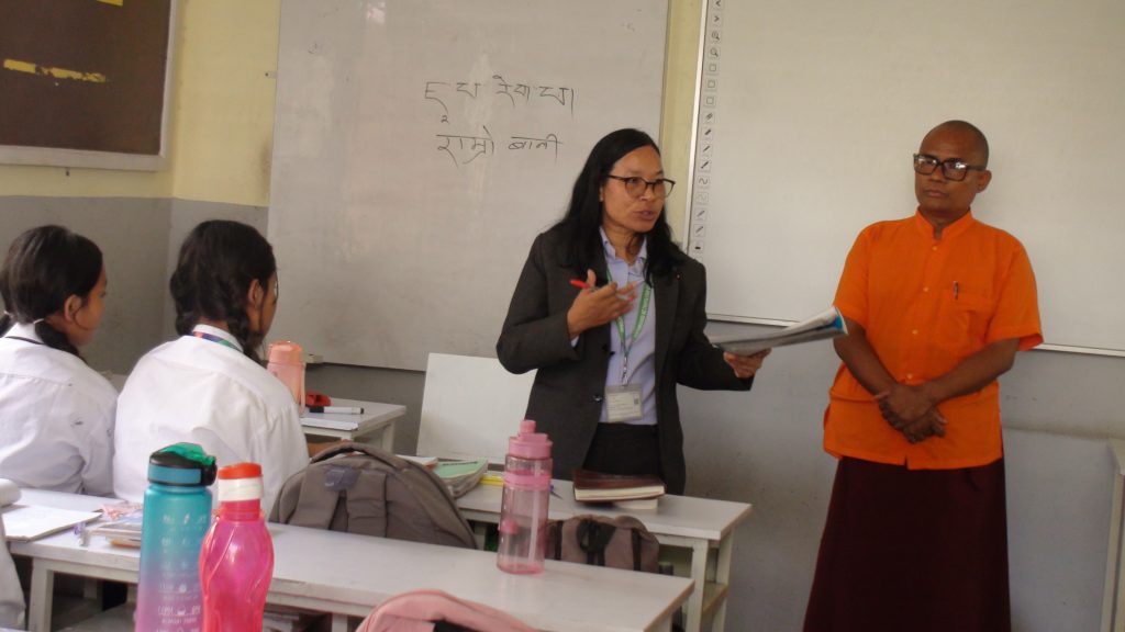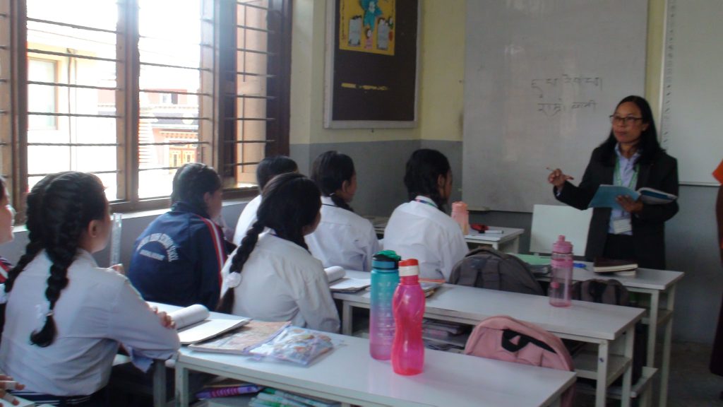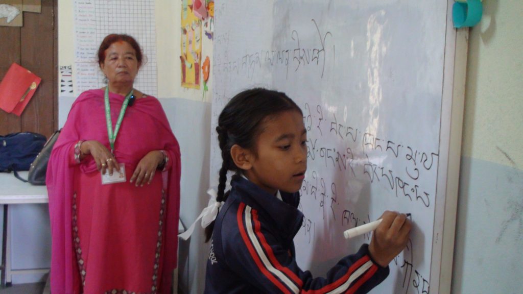 Pictures taken by us when we arrived at Sri Mahendra Boudha Secondary School located in Kathmandu Metropolitan City Ward No.6, Boudha, where Tamang mother tongue is being taught in Sambhota script.